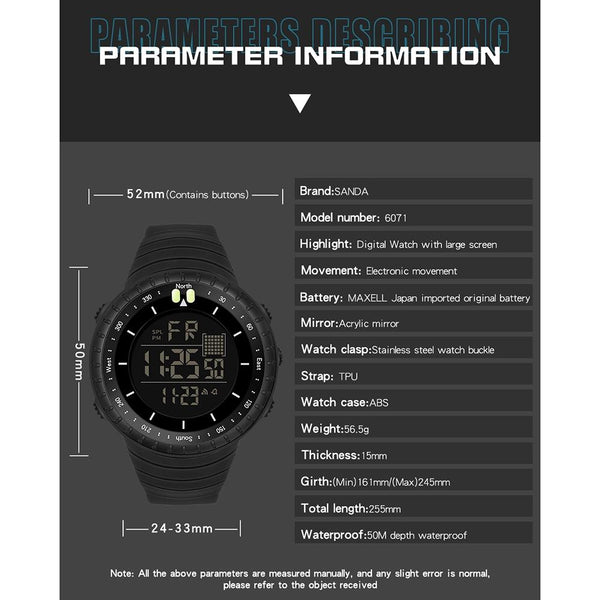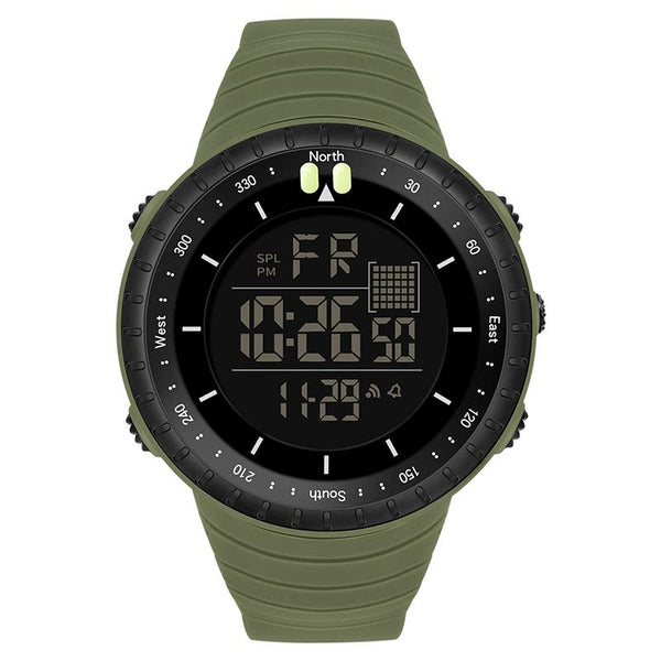 SANDA 6071 Three-split Screen LED Digital Display Luminous Stopwatch Timing Multifunctional Men Sports Electronic Watch(Army Green)