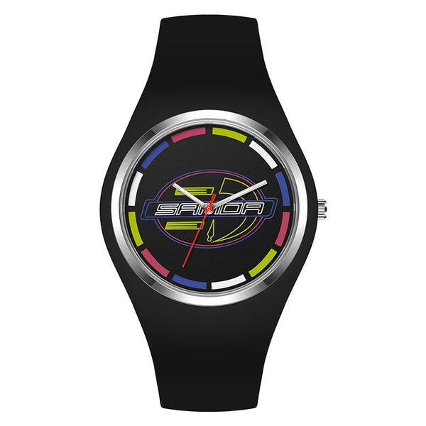 SANDA 6077 Simple Icon Round Dial Ladies Silicone Strap Quartz Watch(Black)