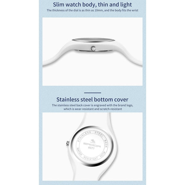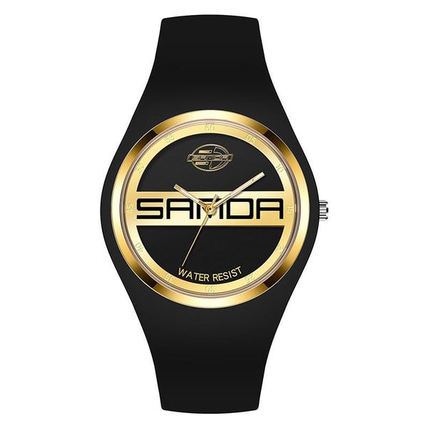 SANDA 6077 Simple Icon Round Dial Ladies Silicone Strap Quartz Watch(Black Gold Dual Mark)