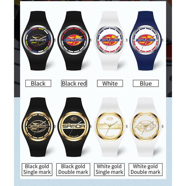 SANDA 6077 Simple Icon Round Dial Ladies Silicone Strap Quartz Watch(Black Gold Single Mark)