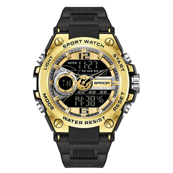 SANDA 6092 Luminous Dual Time Display Waterproof Sports Watch(Black Gold)