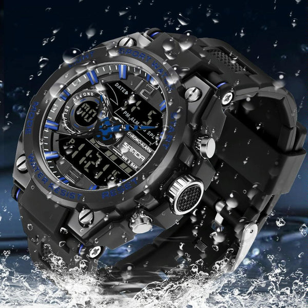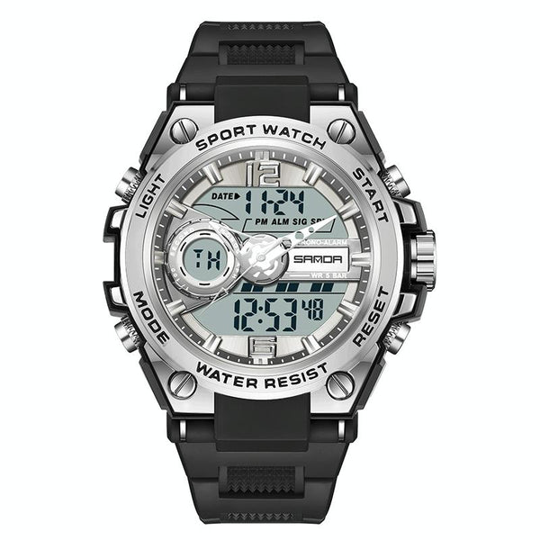 SANDA 6092 Luminous Dual Time Display Waterproof Sports Watch(Black Silver)