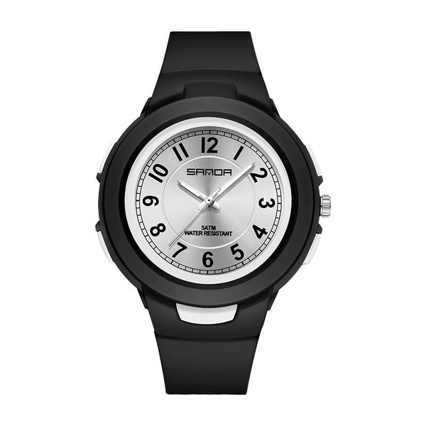 SANDA 6095 Student Sports Waterproof Electronic Watch(Black White)