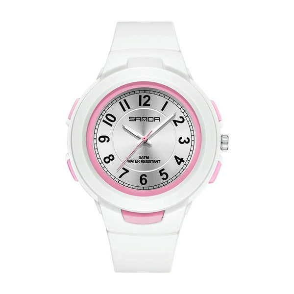 SANDA 6095 Student Sports Waterproof Electronic Watch(White Pink)