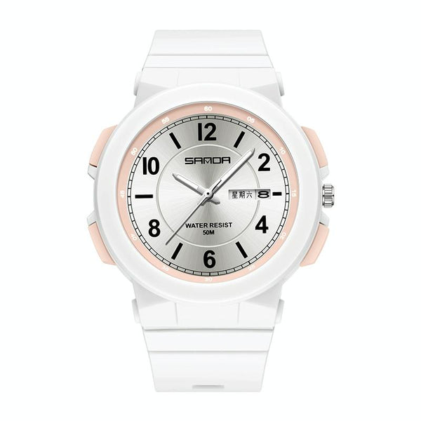 SANDA 6097 TPU Strap Dual Calendar Waterproof Electronic Watch(White Pink)