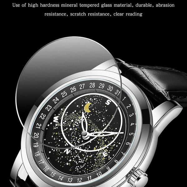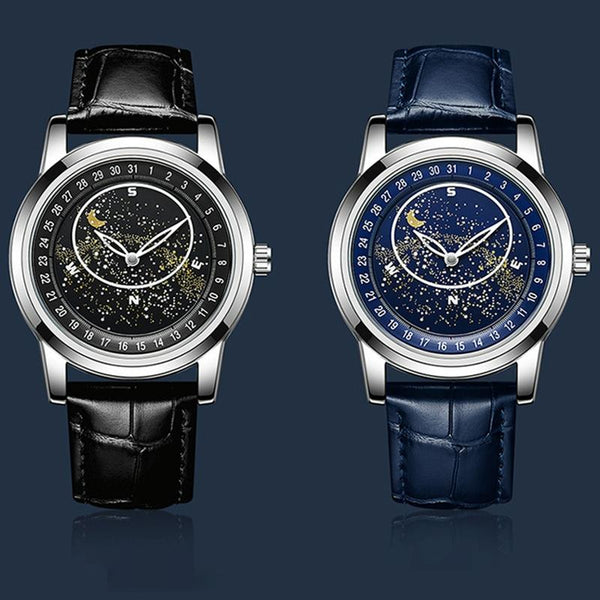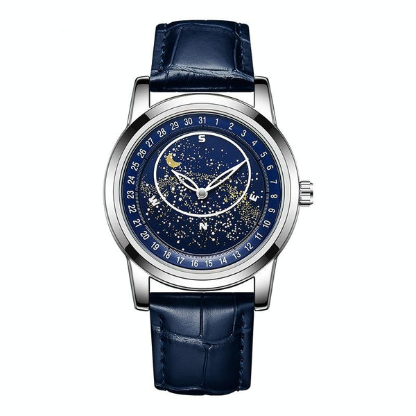 SANDA 7001 Leather Strap Luminous Waterproof Mechanical Watch(Silver Blue)