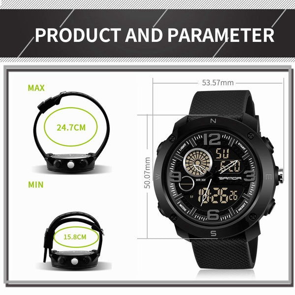SANDA 762 Watch Men Watch Students Men Watch Fashion Trend Youth Waterproof Night light Sports Men(Gray)