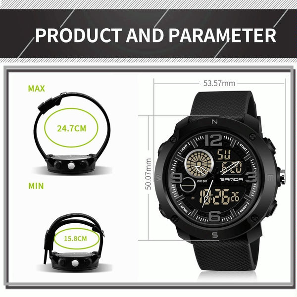 SANDA 762 Watch Men Watch Students Men Watch Fashion Trend Youth Waterproof Night light Sports Men(Red)