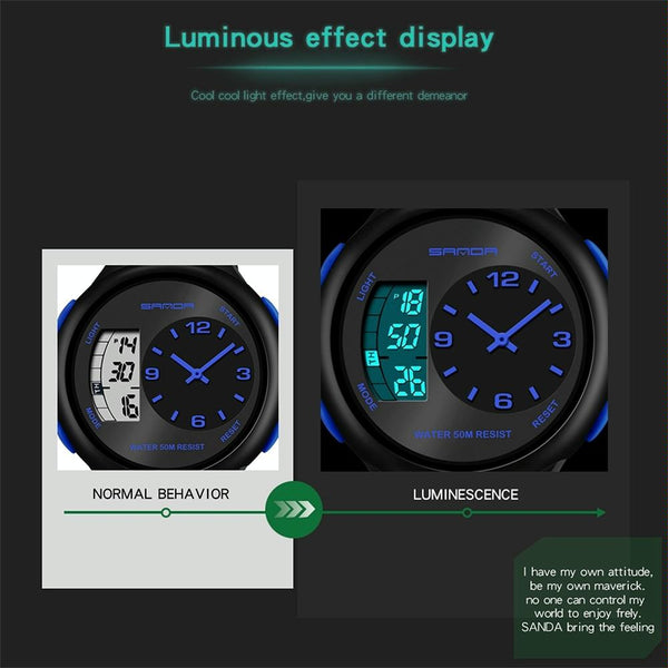 SANDA 763 Men Waterproof Student Watch Explosive Fashion Multi Functional Night light Outdoor Sports Personality Electronic Wrist Watch(Green)