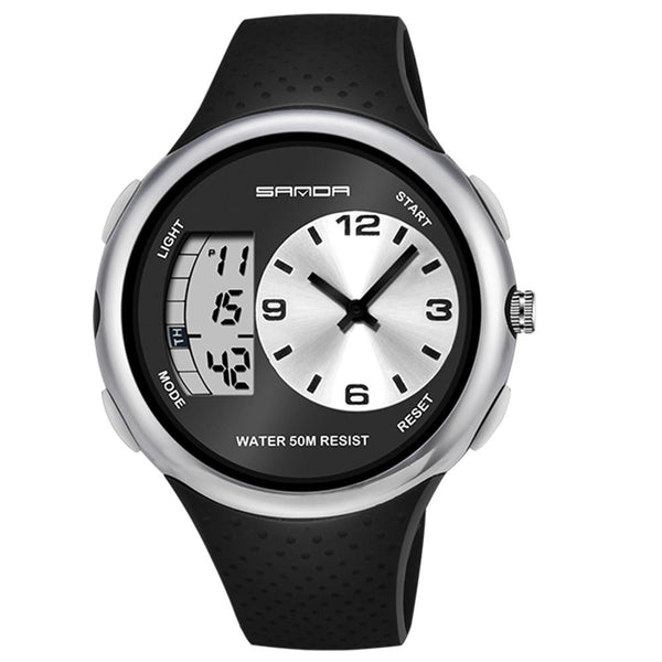SANDA 763 Men Waterproof Student Watch Explosive Fashion Multi Functional Night light Outdoor Sports Personality Electronic Wrist Watch(Silvery)