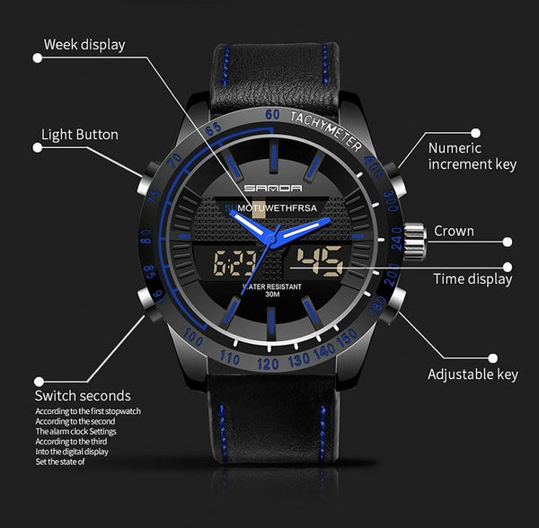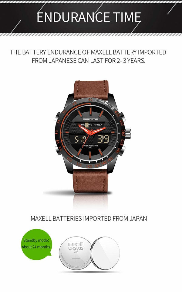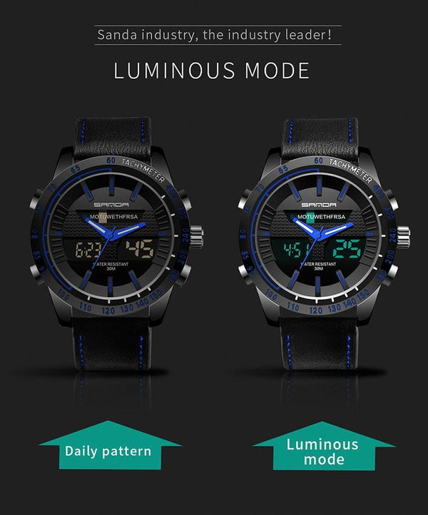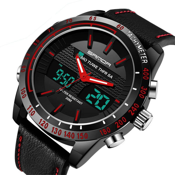 SANDA 774 Men Belt Watch Dual Display Multi Function Sports Electronic Watch Fashion Trend Leisure Waterproof Luminous Watch(Red)