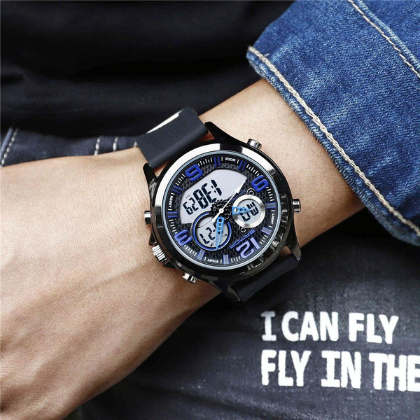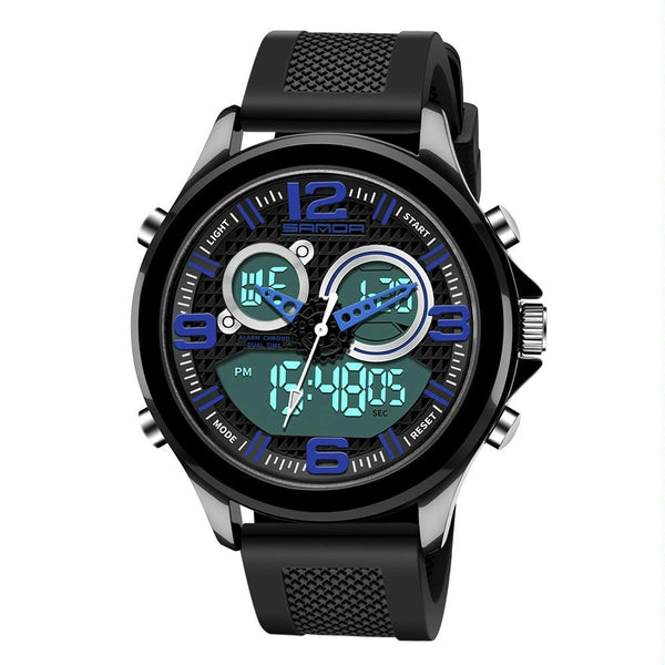 SANDA 793 large Dial Tide Watch Student Fashion Trend Multi Function Double Glow Waterproof Electronic Watch(Blue)