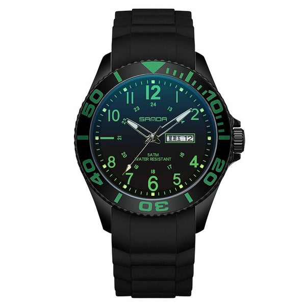 SANDA 9005 TPU Strap Dual Display Waterproof Electronic Watch(Black Green)