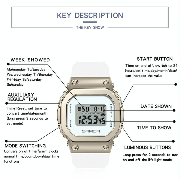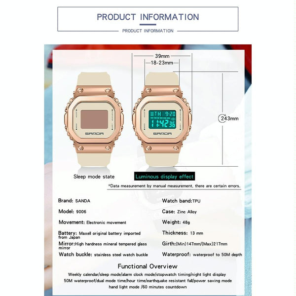SANDA 9006 LED Digital Display Square Dial Sports Electronic Watch for Men and Women(Black Rose Gold)