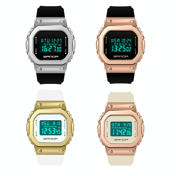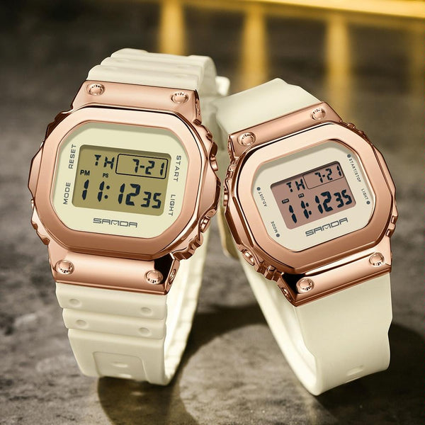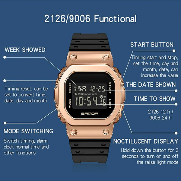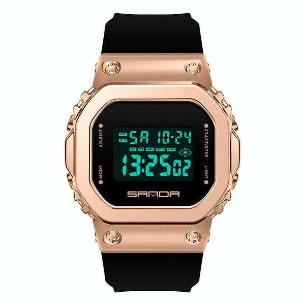 SANDA 9006 Tempered Mirror Luminous Waterproof Dual Display Electronic Watch(Black Rose Gold)