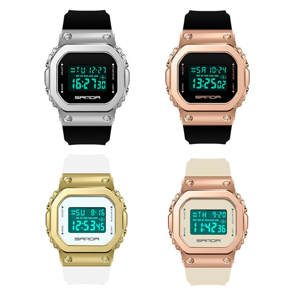 SANDA 9006 Tempered Mirror Luminous Waterproof Dual Display Electronic Watch(Black Silver)