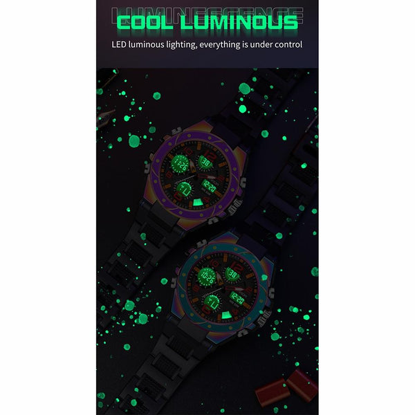 SANDA Dual Digital Display Luminous Stopwatch Chronograph Alarm Clock Men Quartz Sports Watch(6024 Symphony Blue)