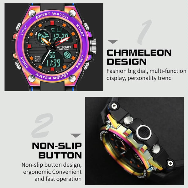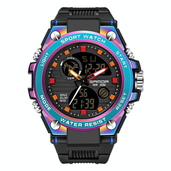 SANDA Dual Digital Display Luminous Stopwatch Chronograph Alarm Clock Men Quartz Sports Watch(739 Symphony Blue)