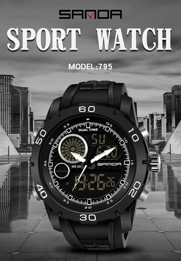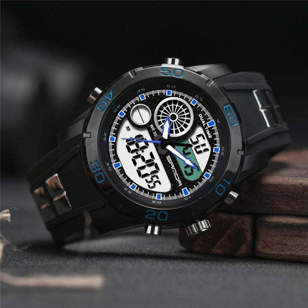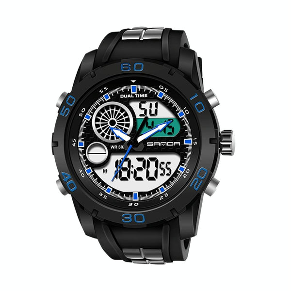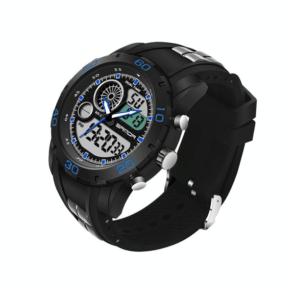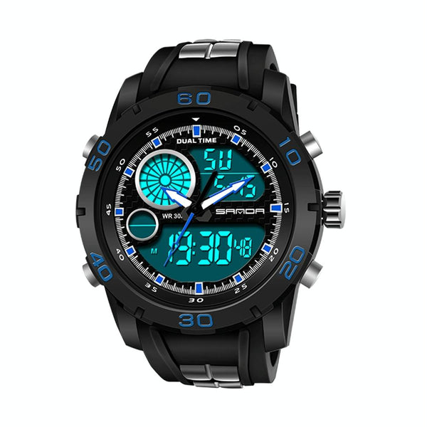 SANDA New Waterproof Luminous Plastic Multi Functional Watch Men Outdoor Sports LED Electronic Watch(Blue)