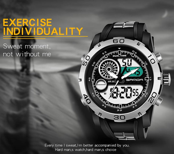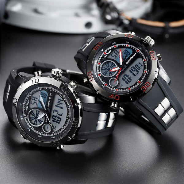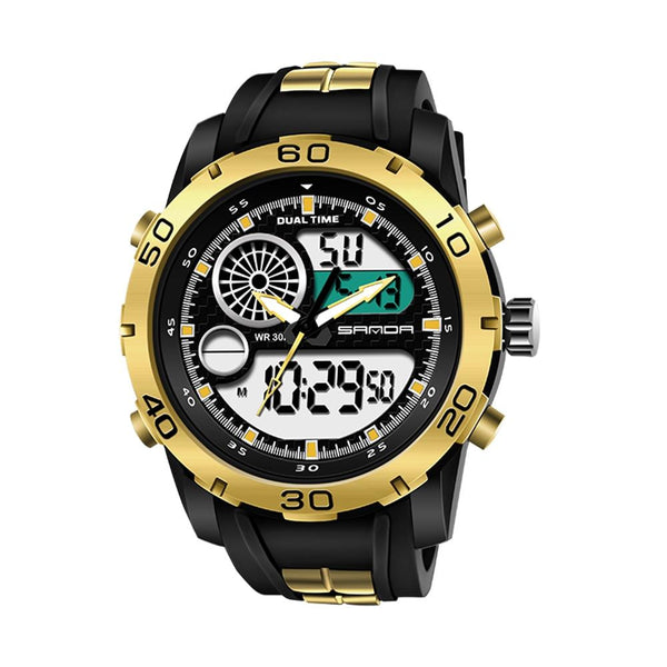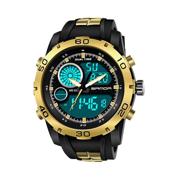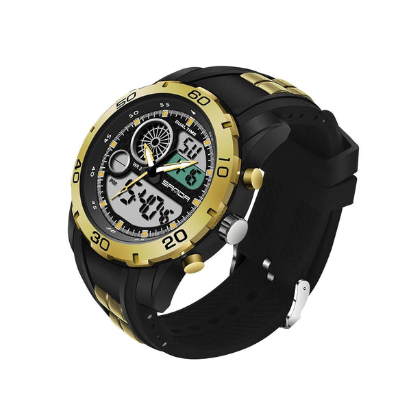 SANDA New Waterproof Luminous Plastic Multi Functional Watch Men Outdoor Sports LED Electronic Watch(Gold)