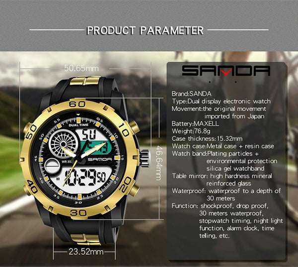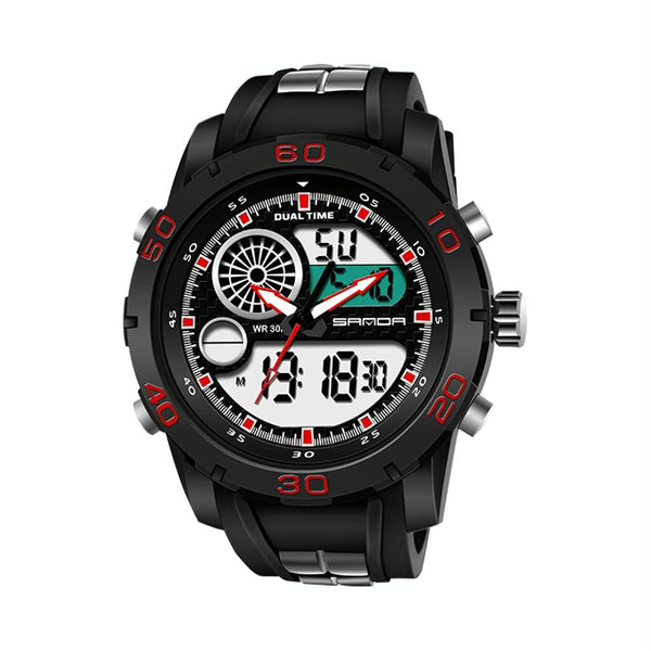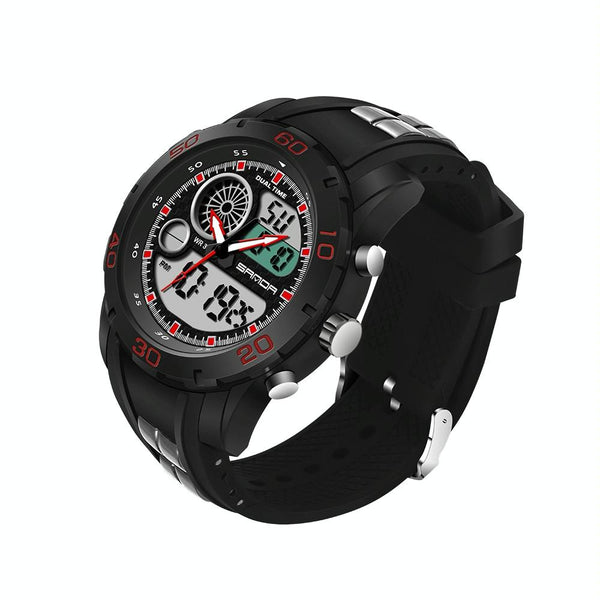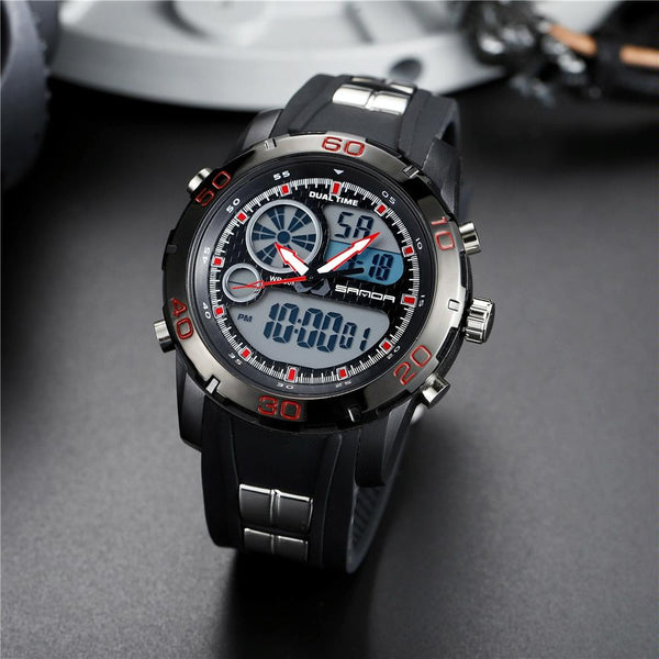 SANDA New Waterproof Luminous Plastic Multi Functional Watch Men Outdoor Sports LED Electronic Watch(Red)