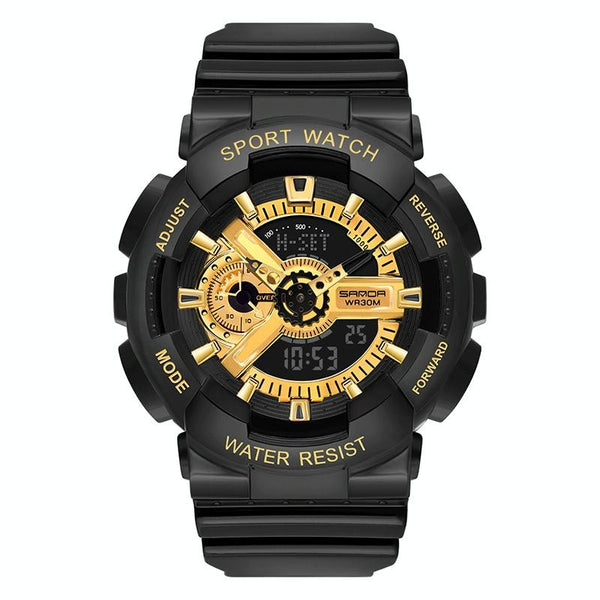 SANDA Outdoor Leisure Waterproof Multifunctional Luminous Electronic Watch(Black Gold Men)