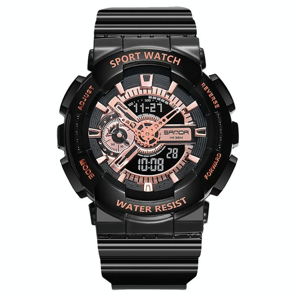 SANDA Outdoor Leisure Waterproof Multifunctional Luminous Electronic Watch(Black Rose Gold Men)