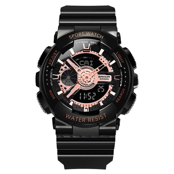 SANDA Outdoor Leisure Waterproof Multifunctional Luminous Electronic Watch(Black Rose GoldWoman)