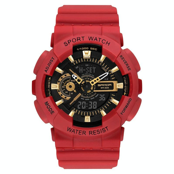 SANDA Outdoor Leisure Waterproof Multifunctional Luminous Electronic Watch(Sand Dark Red Men)