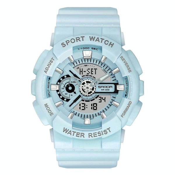 SANDA Outdoor Leisure Waterproof Multifunctional Luminous Electronic Watch(Sand Haze Blue Men)