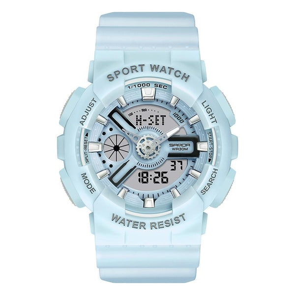 SANDA Outdoor Leisure Waterproof Multifunctional Luminous Electronic Watch(Sand Haze Blue Women)