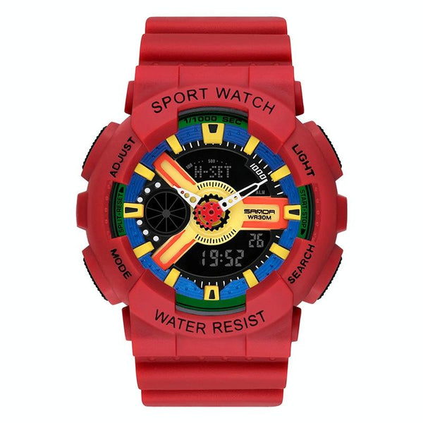 SANDA Outdoor Leisure Waterproof Multifunctional Luminous Electronic Watch(Sand Tomato Red Women)