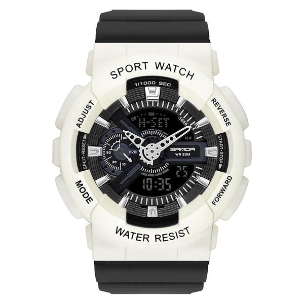 SANDA Outdoor Leisure Waterproof Multifunctional Luminous Electronic Watch(Sand White Black Men)