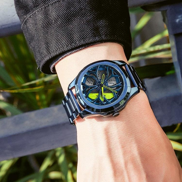 SANDA P1065 Wheel Series Casual Steel Band Quartz Watch For Men(Blue Green)