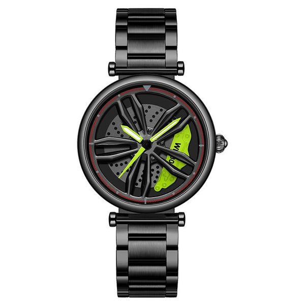 SANDA P1074 Cool Couple Steel Band Quartz Watch Wheel Series Dial Ladies Watch(Black Green)