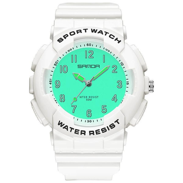 SANDA Small Fresh Digital All-match Waterproof Luminous Student Watch(White)