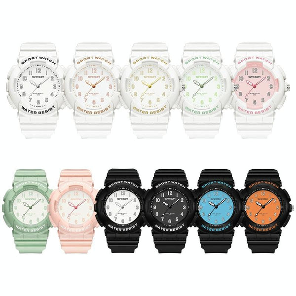 SANDA Small Fresh Digital All-match Waterproof Luminous Student Watch(White Pink)