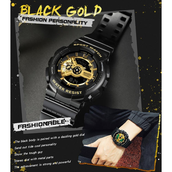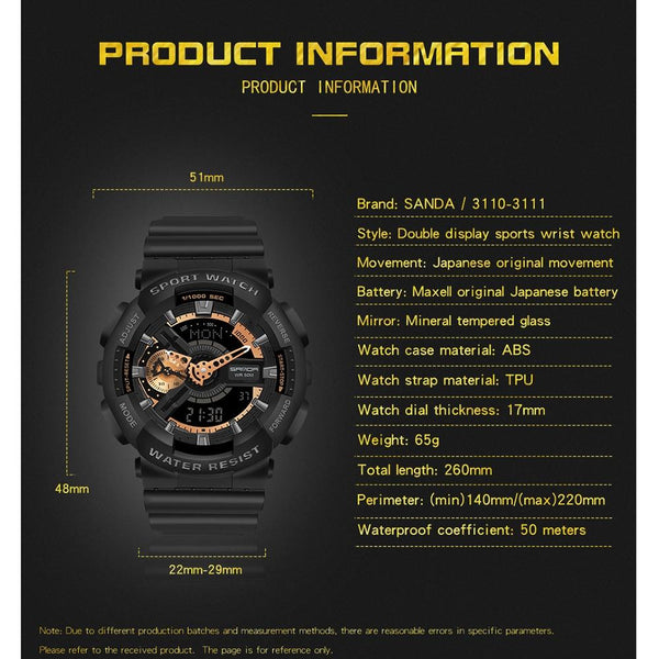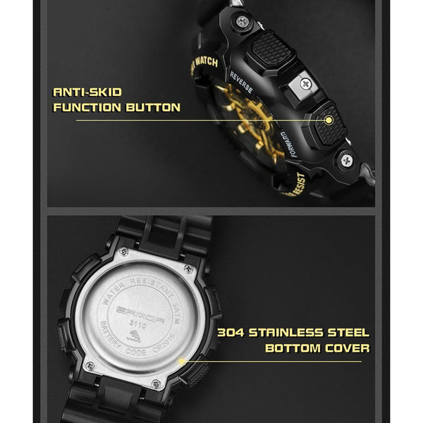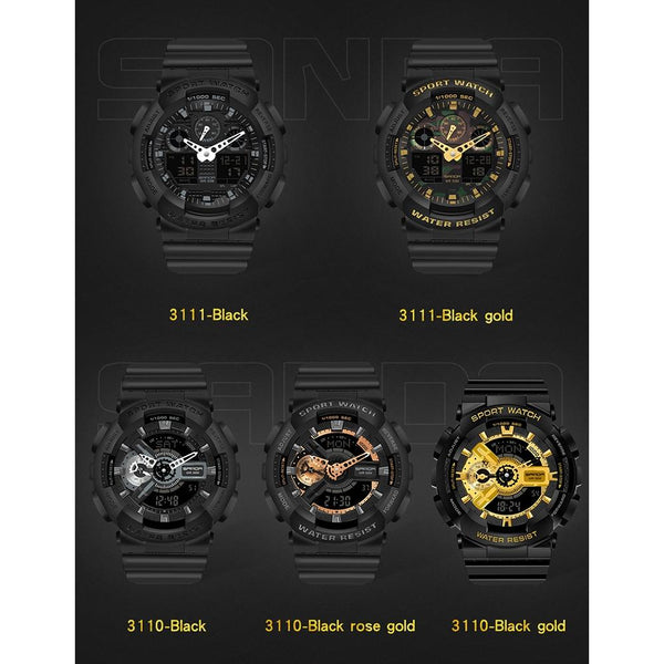 SANDA World Time Luminous Calendar Multifunctional Men Sports Quartz Watch(3110 Black Gold)