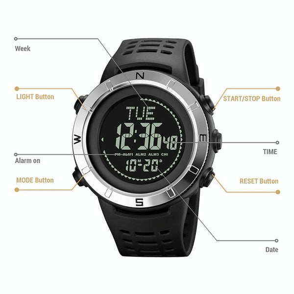 Shimei 2096 Multifunctional Men 50M Waterproof Compass Noctilucent Digital Wrist Watch(Silver)