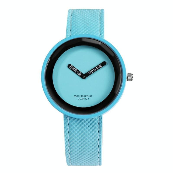 Simple Style Round Dial Matte Leather Strap Quartz Watch for Men / Women(Blue)