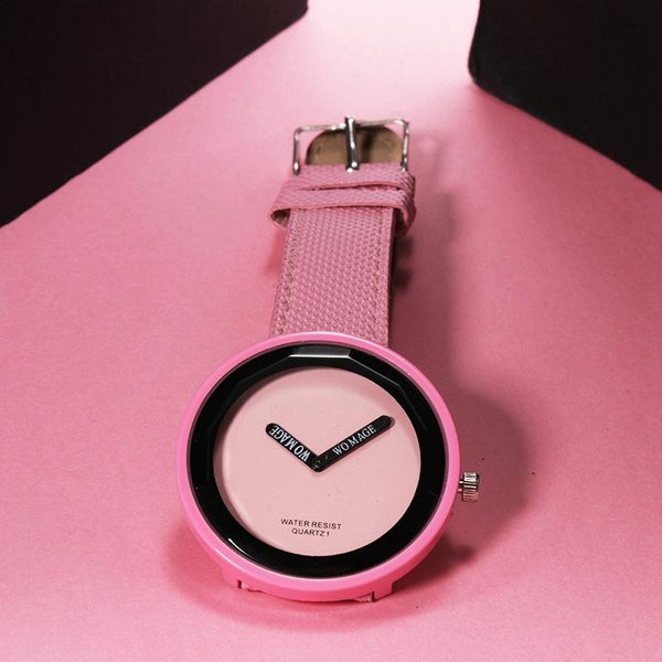 Simple Style Round Dial Matte Leather Strap Quartz Watch for Men / Women(Pink)