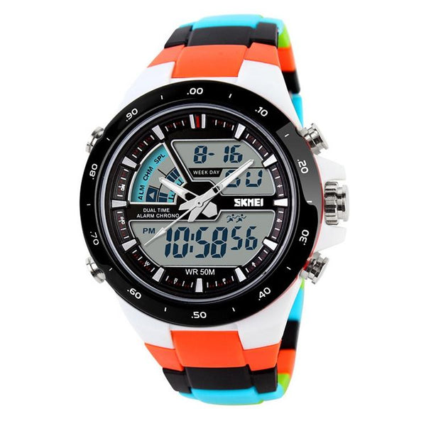 SKMEI 1016 Multifunctional Men Outdoor Sports Camouflage Noctilucent Waterproof Double Digital Watch (Orange)