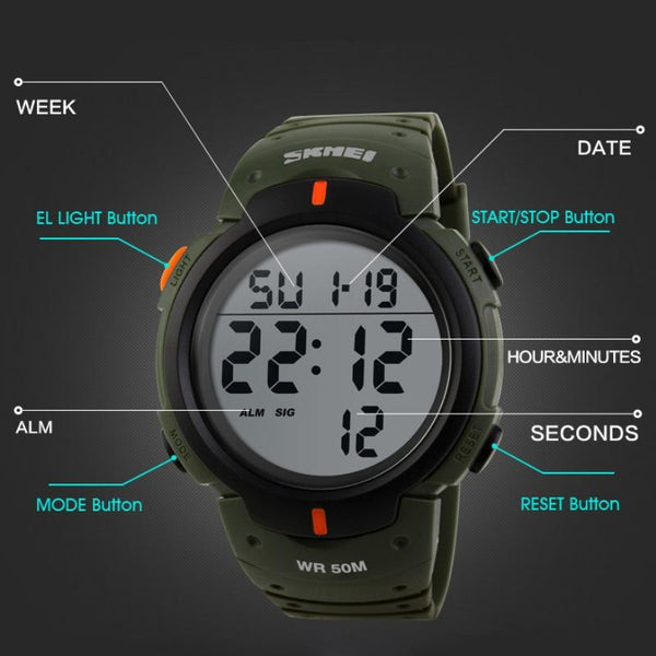 SKMEI 1068 Men Waterproof Outdoor Sports Digital Watch Student Fashion Watch(Black)
