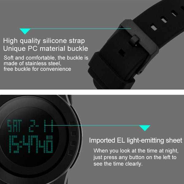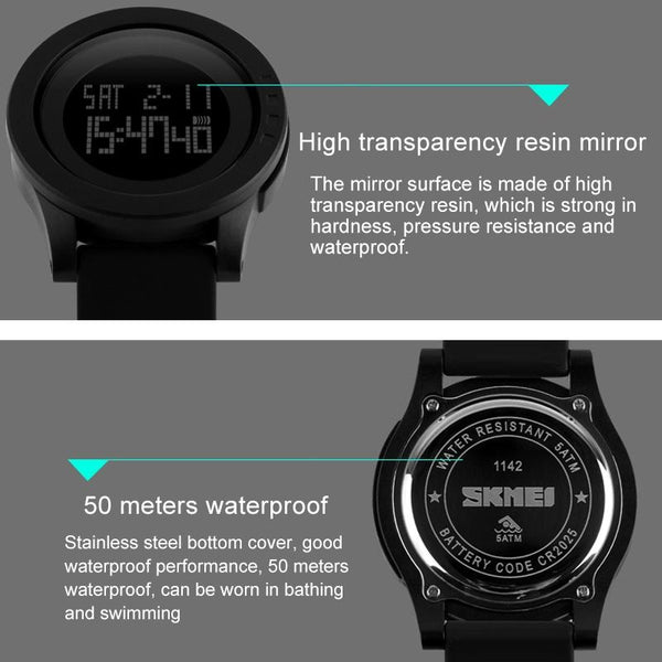 SKMEI 1142 Multifunctional Men Outdoor Sports Noctilucent Waterproof Silica Gel Digital Watch (Black)