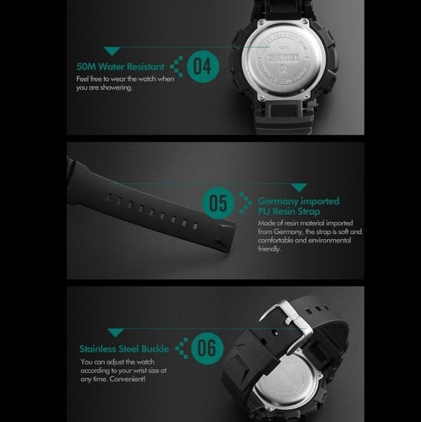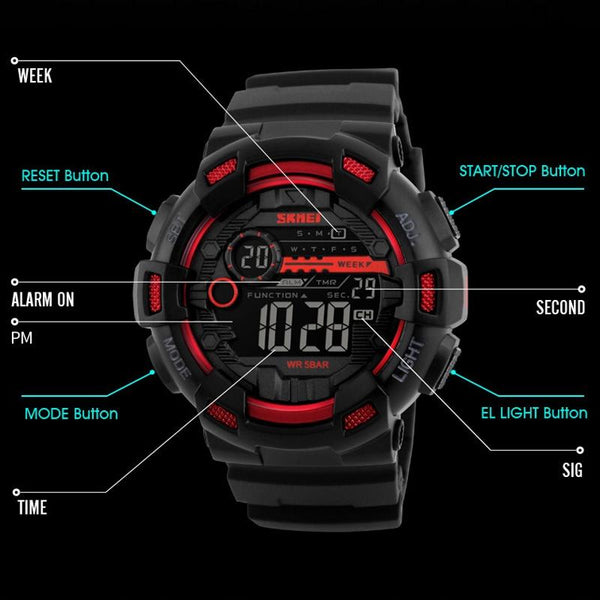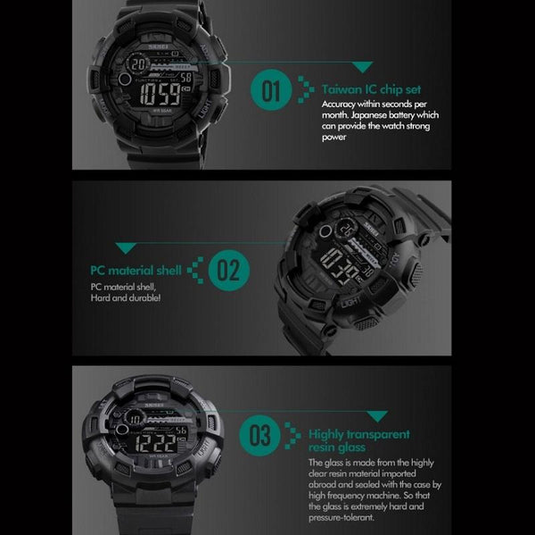 SKMEI 1243 Men Sports Watch Outdoor Waterproof Digital Watch(Black)