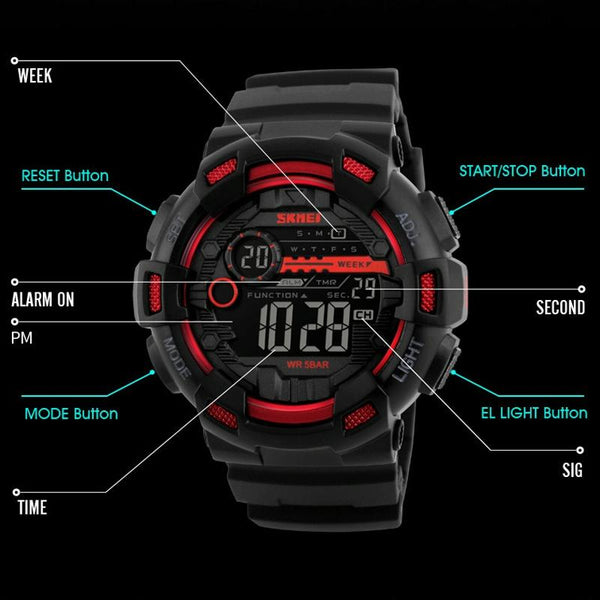 SKMEI 1243 Men Sports Watch Outdoor Waterproof Digital Watch(Red)