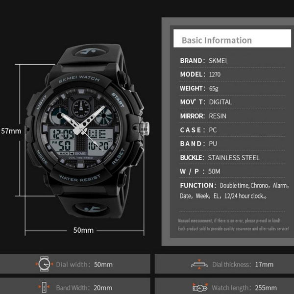 SKMEI 1270 Men Waterproof Dual Display Digital Watch Outdoor Sports Watch(Gray)