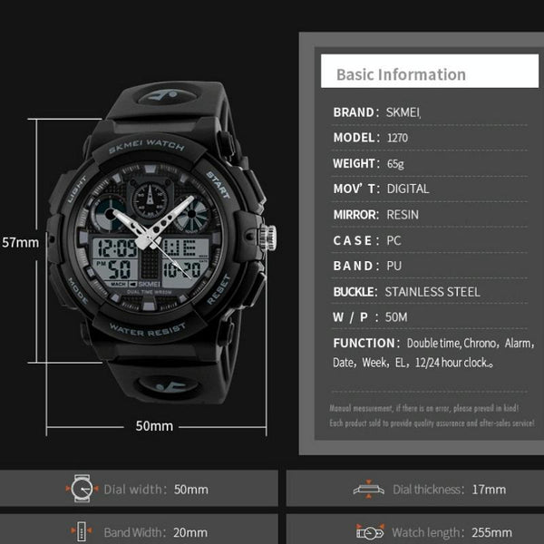 SKMEI 1270 Men Waterproof Dual Display Digital Watch Outdoor Sports Watch(Green)
