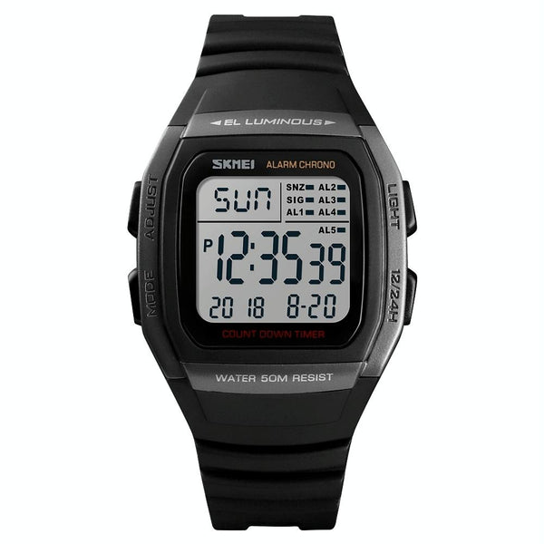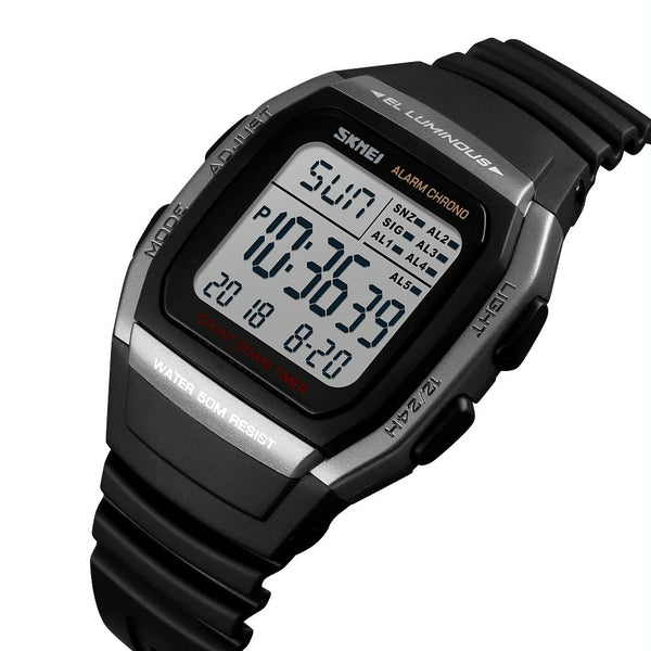 SKMEI 1278 Fashionable Outdoor 50m Waterproof Digital Watch Student Sports Wrist Watch Support 5 Group Alarm Clocks (Titanium)