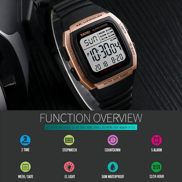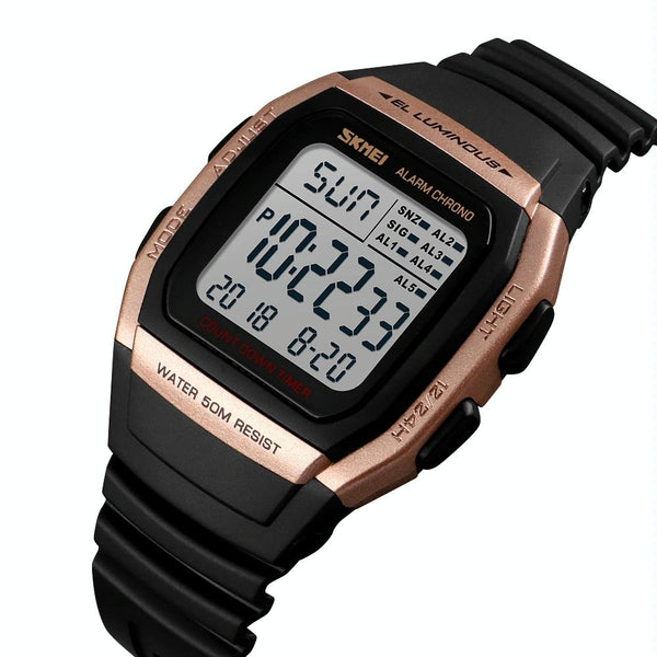 SKMEI 1278 Fashionable Outdoor 50m Waterproof Digital Watch Student Sports Wrist Watch Support 5 Group Alarm Clocks(Rose Gold)
